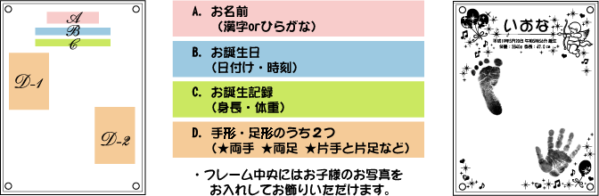 お名前の下にはお誕生日とお誕生記録をお入れ致します。