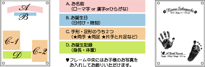 お名前とお誕生日、または記念日の日付けをお入れします。