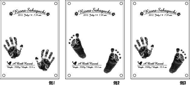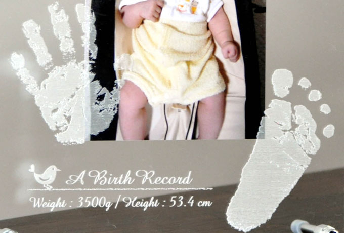 可愛いお子様の手足形、身長、体重を刻印致します。